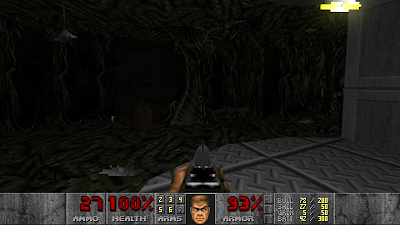 Of course, playing this thirty years on you might find the level design to be distinctly of that "1994" variety; while the mapping is very much a product of its time, with misaligned textures, empty rooms that serve no obvious purpose to the setting, and a generally liminal ugliness that I personally think is part of the charm... to be quite honest, I don't think Aliens TC would have worked nearly as well without its labyrinthine design, something that unlike all the other "features" I've been sad to see disappear from mapping trends in the last couple decades. If I had to pick a level as truly bad even by the standards of the time, I'd pick the secret level, an attempted recreation of the massive alien derelict (as seen in the first Alien film) by Fisher's friend Richard Love. It's certainly playable, but most of the level is in pitch black, which -- depending on what source port you might be using -- may prove untenable.